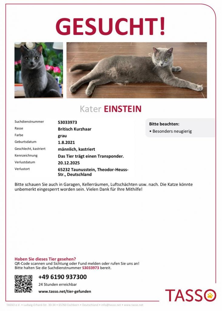 Update vom 27.12.2025: Einstein ist wieder zuhause!