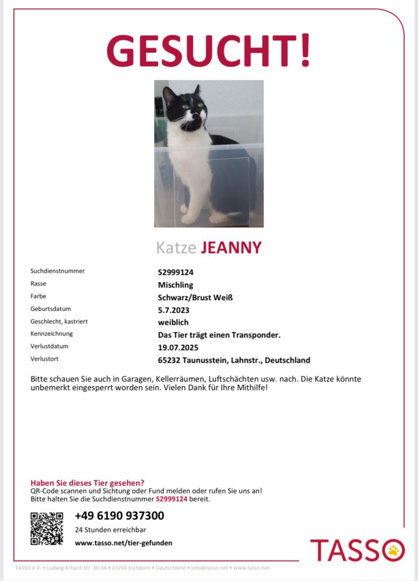 Keine Kommentare Wir sind wieder Zuhause 26 Juli, 2025 JEANNY Aktuelle Suchmeldungen von Tasso in 65232 Taunusstein