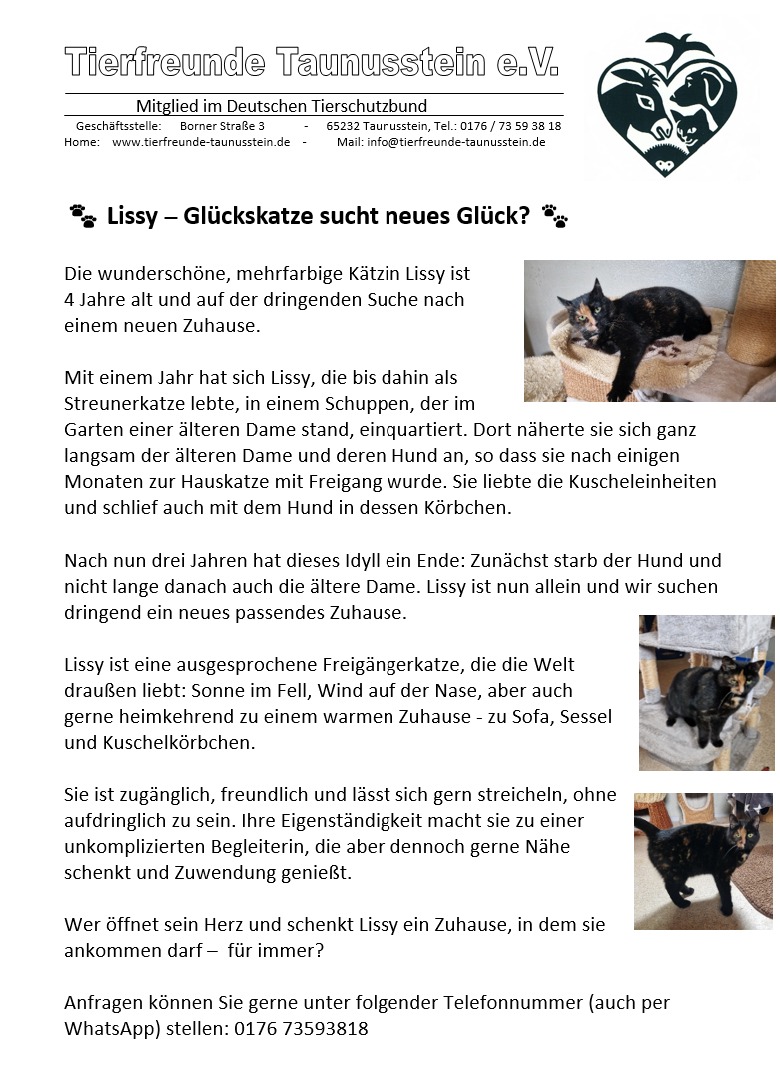 Update vom 11.01.2026: Katze Lissy konnte erfolgreich vermittelt werden.