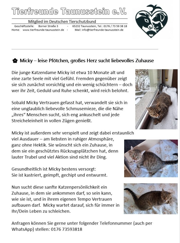 Katze Micky – Vermittlungsanzeige